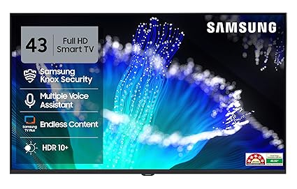 • Smart TV Features: Smart Remote with built-in Voice Assistance | Works with Alexa/Google Assistant external spekers| Endless Content with Samsung TV Plus (Access 100+ free TV Channels) | Web Browser | Quick Remote | Mobile-to-TV Mirroring | Sound Mirroring | Wireless TV On | Connect Apple Devices with AirPlay | Universal Guide | Energy Rating: 3 Star | Annual Energy Consumption: 39 kWh/Year